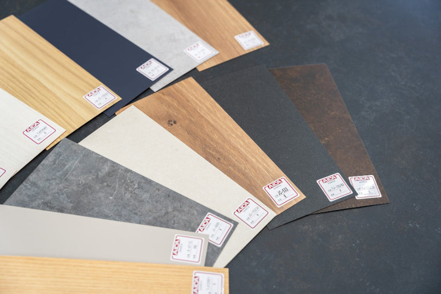 天板にはカラー、デザインが豊富なアイカ工業のメラミン化粧板を使用。日常的な汚れに強くお手入れもカンタンです。