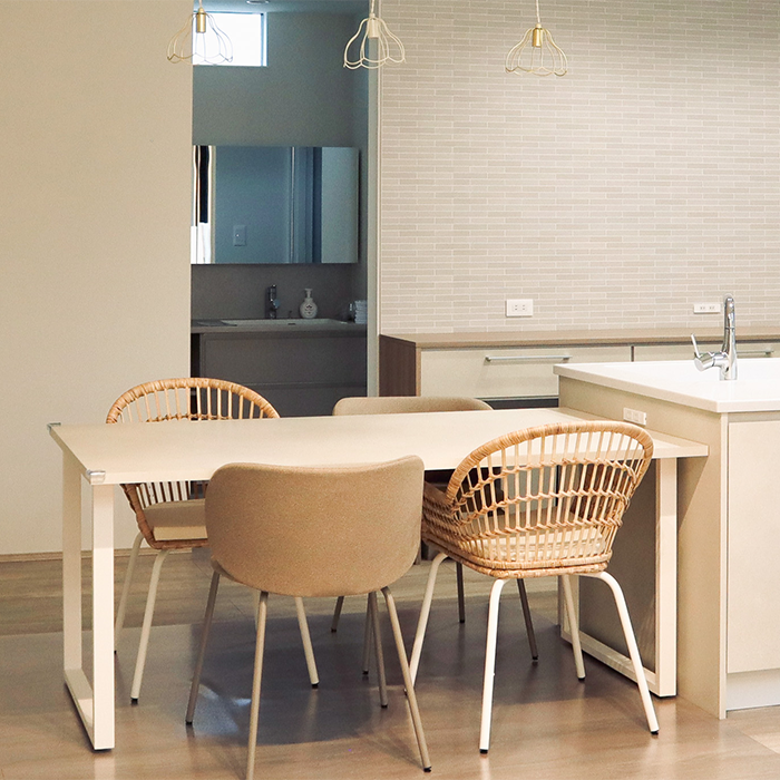 天板には国内トップシェア「アイカ工業」のメラミン化粧板を採用。色・デザインを自由に選べ、キッチンや内装と合わせることで、統一感のある洗練されたLDKが完成します。
