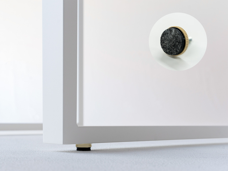 一般的な貼り付けシールではなく、フェルトが一体になったアジャスターを採用。家具を動かしても剥がれる心配がありません。床を傷つけず安心してお使いいただけます。