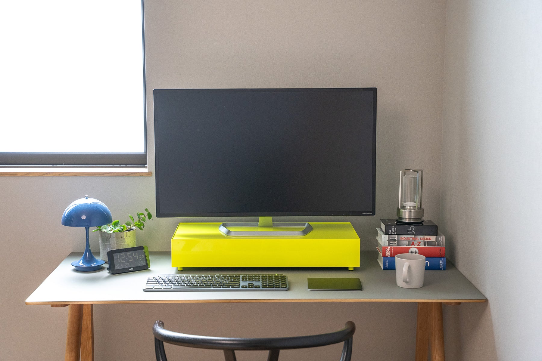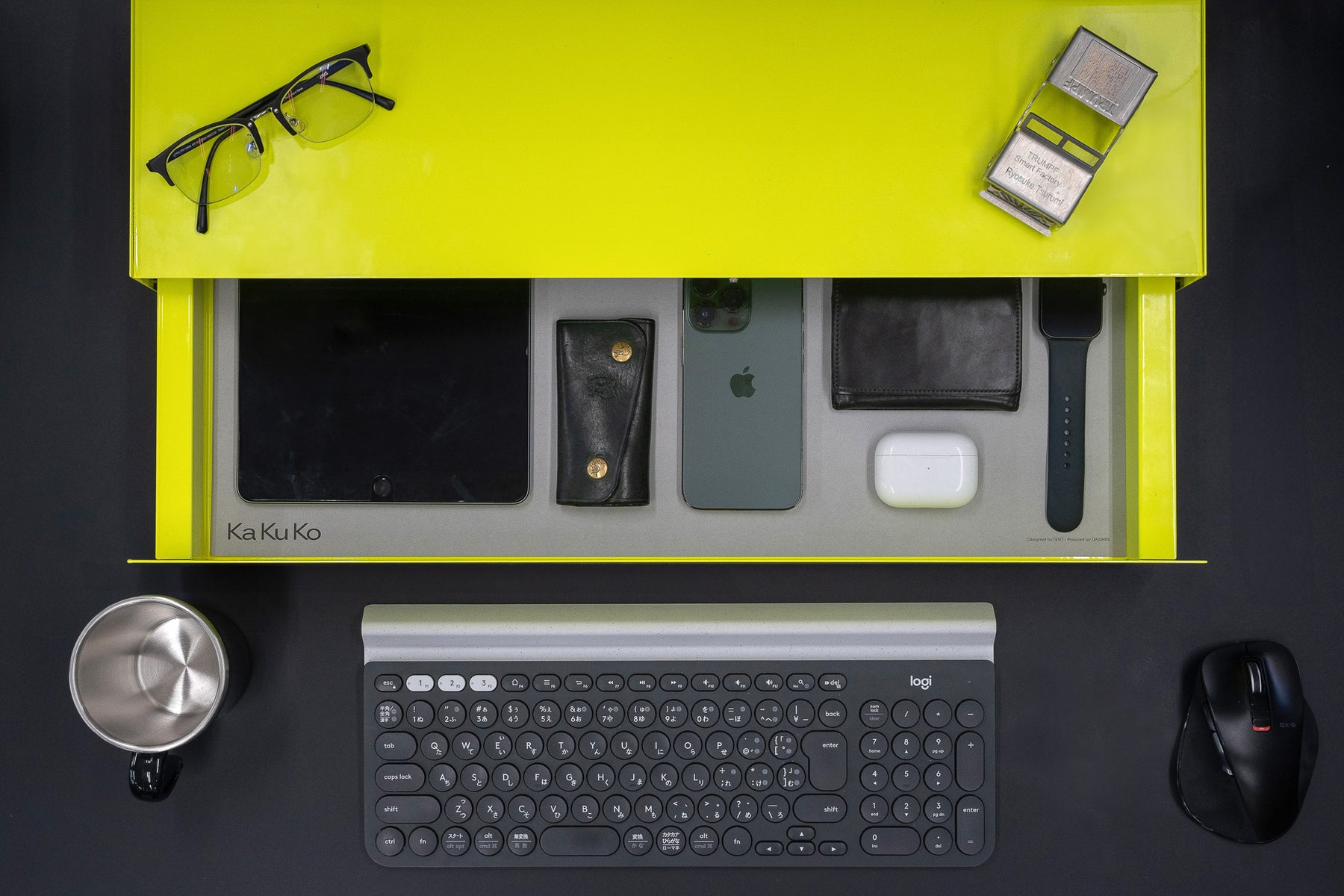 長年の事務用キャビネット製造技術で培ったレールと重量バランスを活かし、するすると動作し、「ましかく」に見える形状を実現しました。