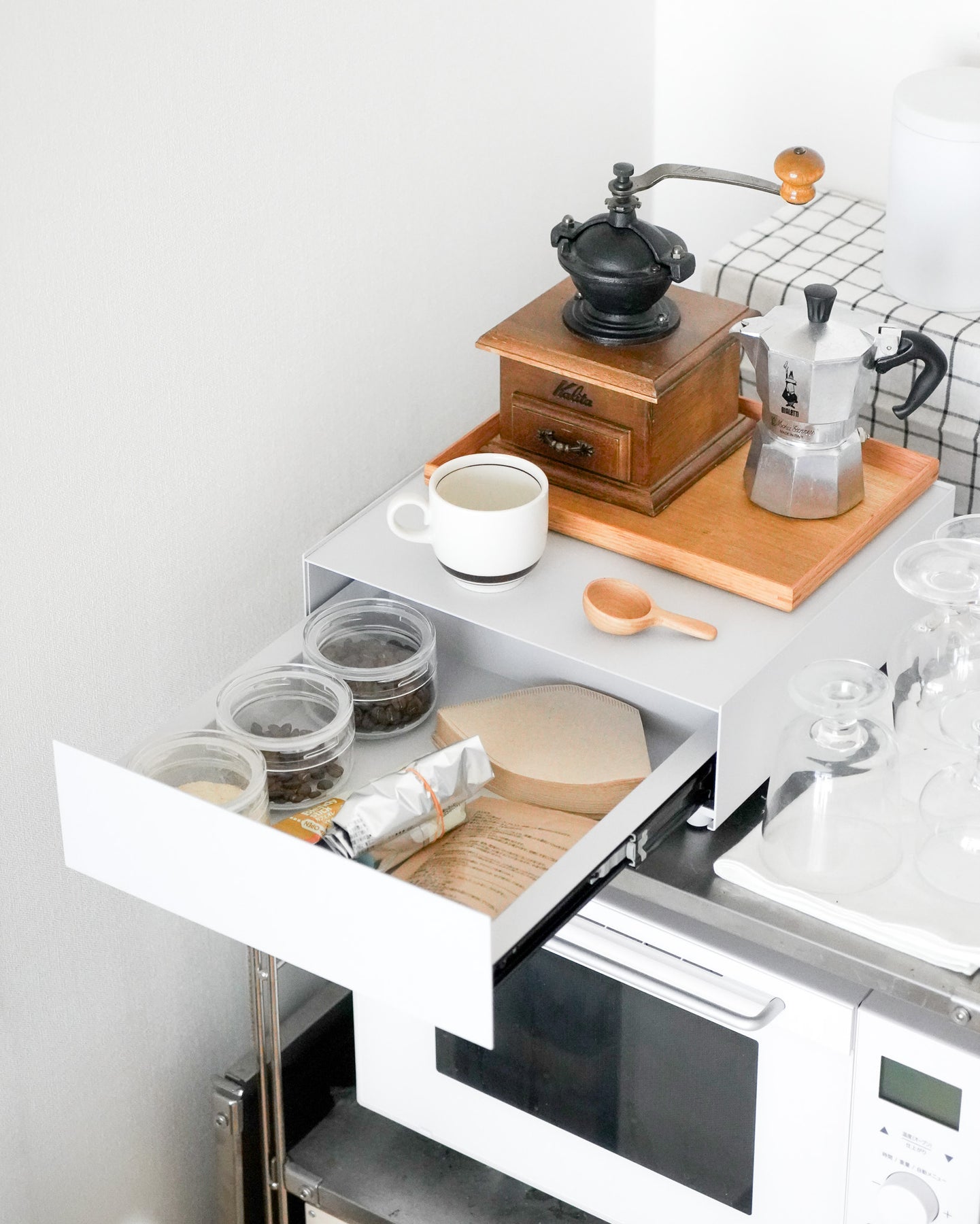 丈夫な天板でキッチン家電もすっきり収納
