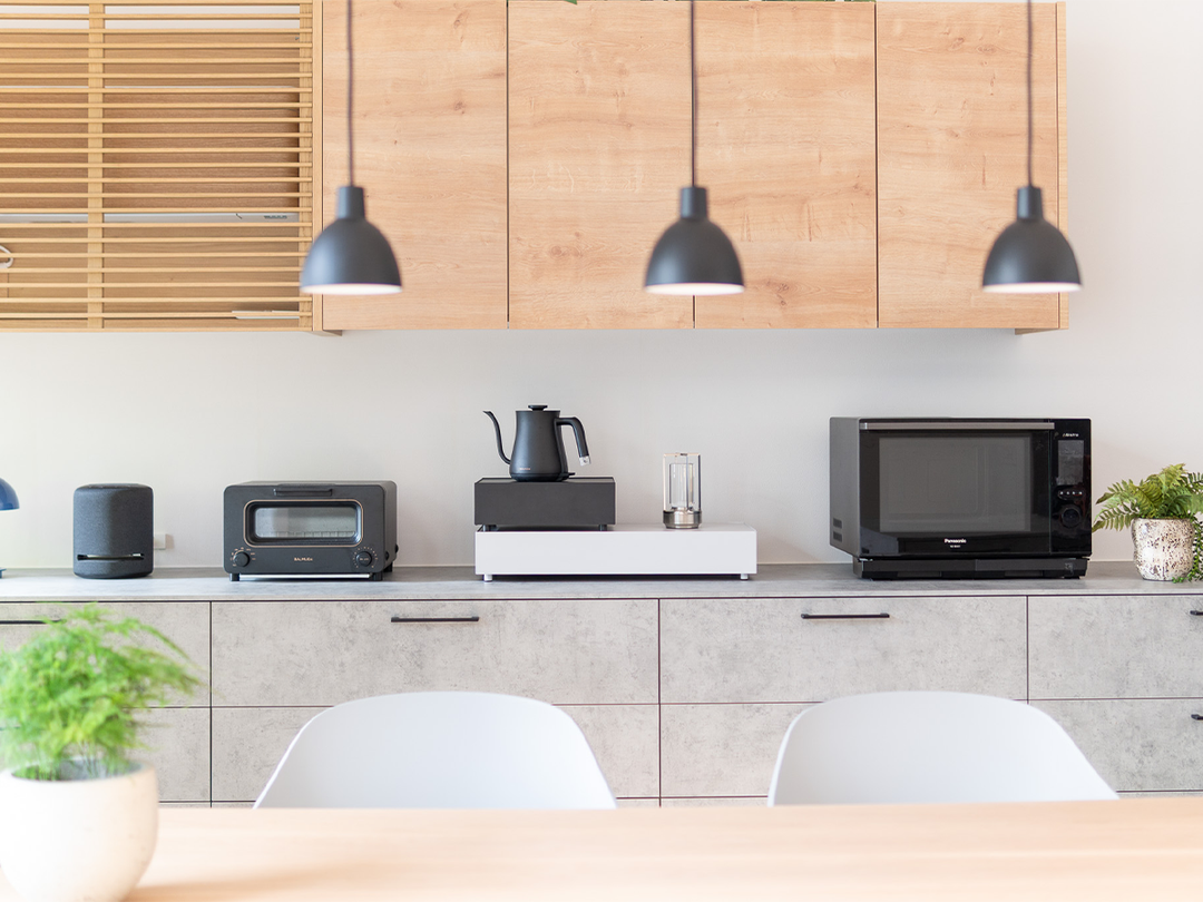 天板の裏に補強が仕込まれているため、キッチン家電も安心して設置可能。