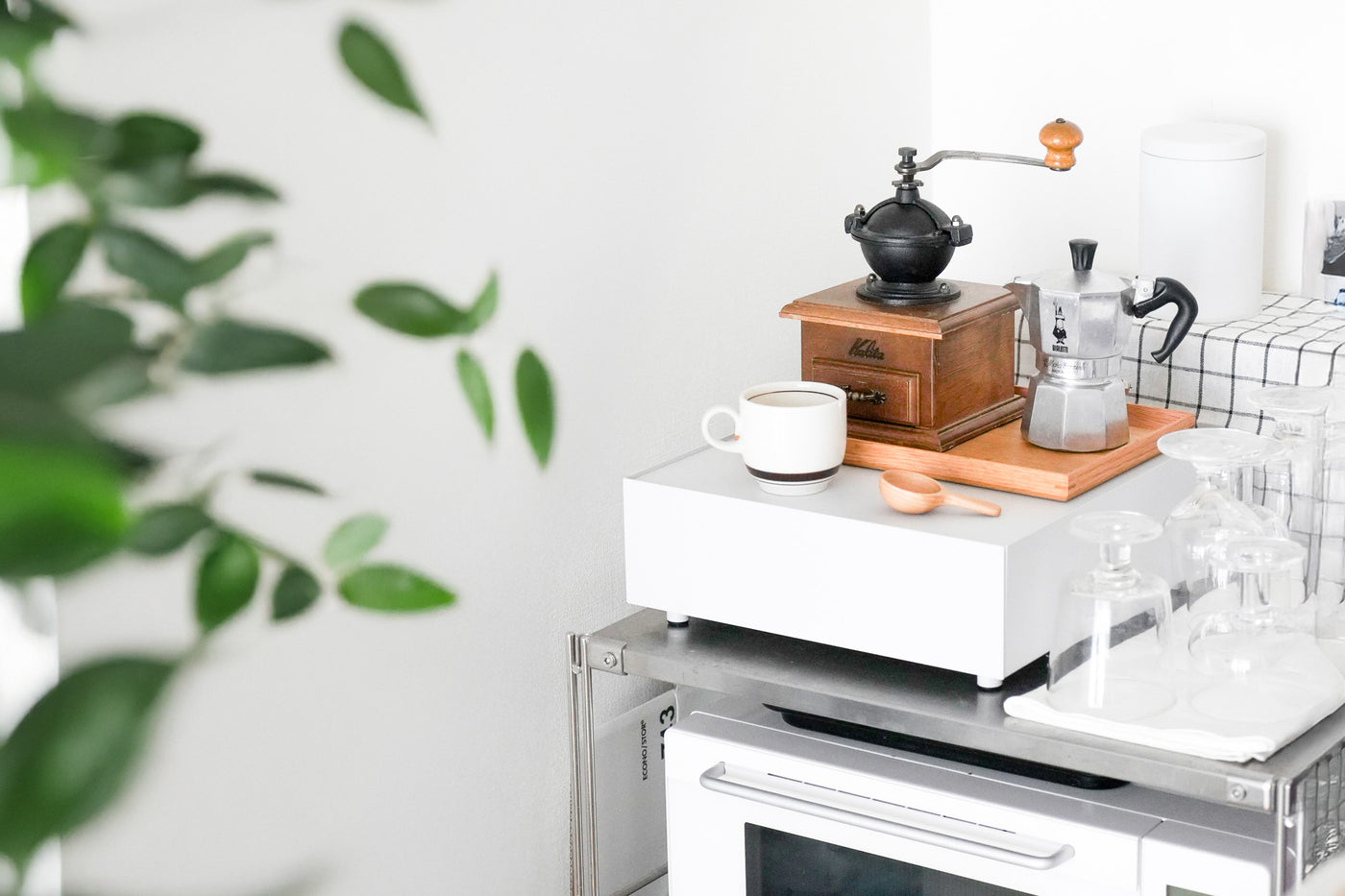 丈夫な天板でキッチン家電もすっきり収納