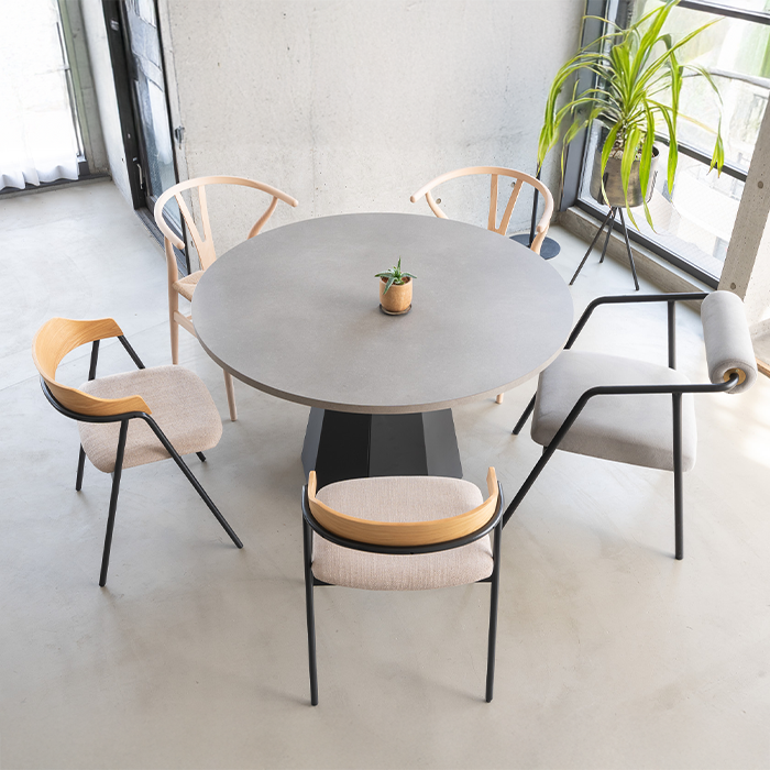 脚が中央に1本だけなので、お好きな位置に椅子を置いていただけます。来客で人が増えた時も安心です。