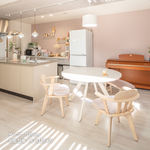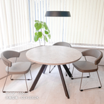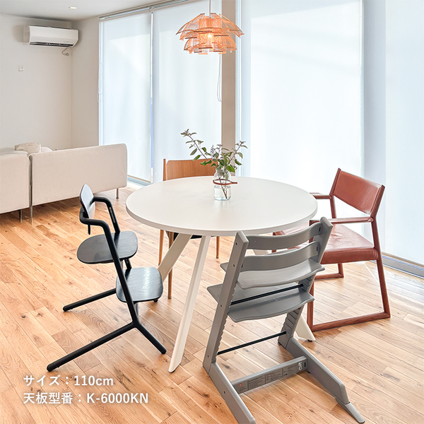オーバル型(楕円)デザインの脚は優しい印象に。角がないのでお子さまのいるご家庭も安心。